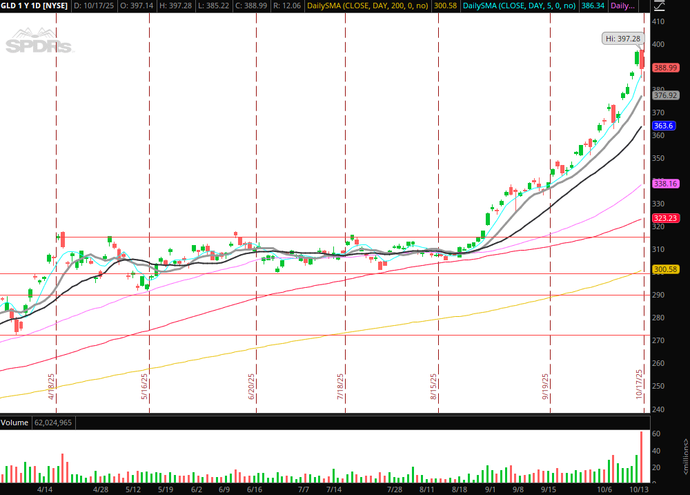Continuation in GLD: Superior alternative on Friday after a file run and RSI in Gold. And a possibility we had been ready for on the desk, and my members had been prepared for, because of Thursday’s assembly. Now, full transparency, I didn’t exit quick over the weekend. I closed my quick intraday close to the lows, and I’ll search for a re-short. Much like my IA ideas on RGTI, on this market, I’d fairly be cautious of the V-shape reversals and re-position quick as soon as the flip occurs. So, for GLD, I might search for a $390 – 392 decrease excessive and a failure to quick intraday, initially concentrating on a re-test of Friday’s low, with a path on in opposition to VWAP. Alternatively, on a niche down and weak maintain, I’d be open to quick momentum intraday.