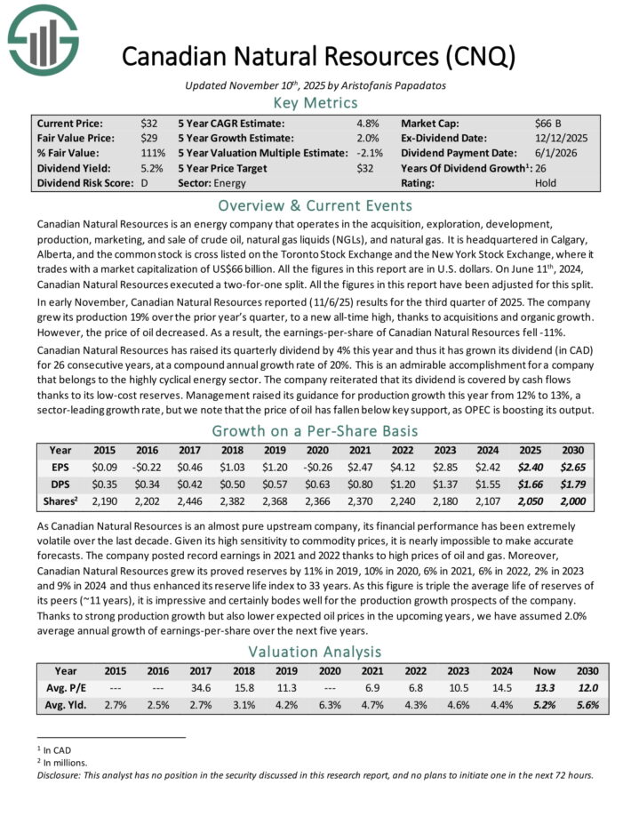 Click on right here to obtain our most up-to-date Positive Evaluation report on CNQ (preview of web page 1 of three proven under):